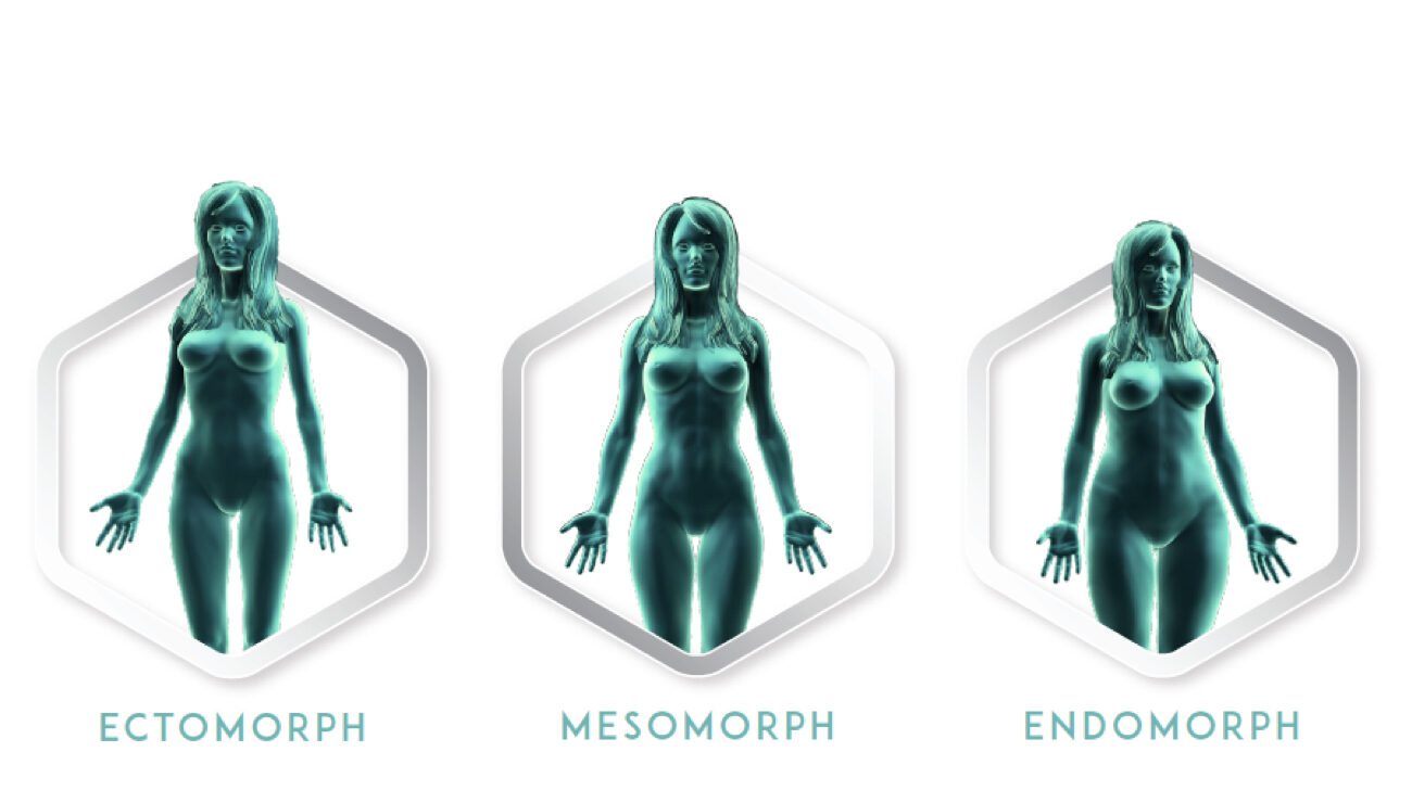 Human beings are classified according to three distinct body types—Endomorph, Mesomorph, Ectomorph. All body types are dominated by 3 familiar elements—Skin, Muscle, and fat. What makes each body type unique is the ratio of these elements.